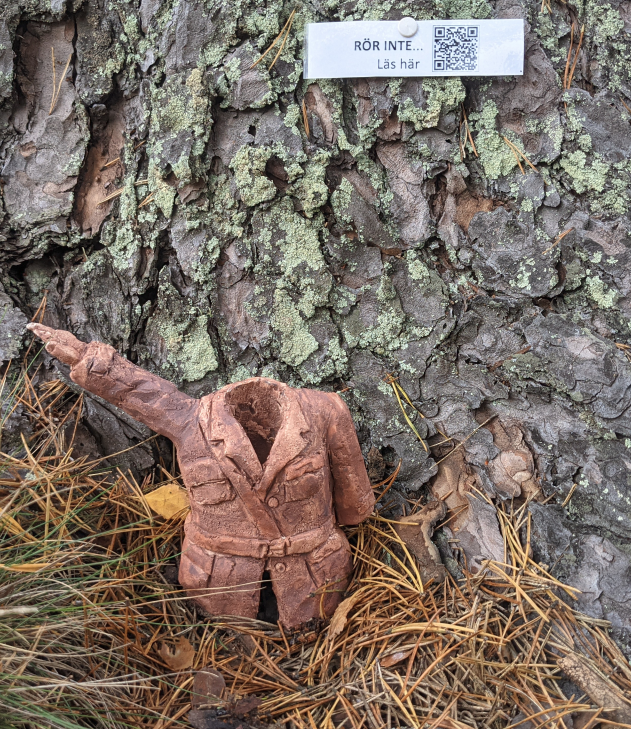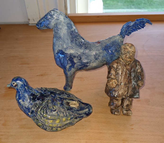 Detta att med glimten i ögat placera ut figurer m m i keramik på andra platser är något Peder roar sig med ibland. Figurerna kan ha varit med på någon utställning eller är prov från verkstaden. Bilderna här visar några exempel.